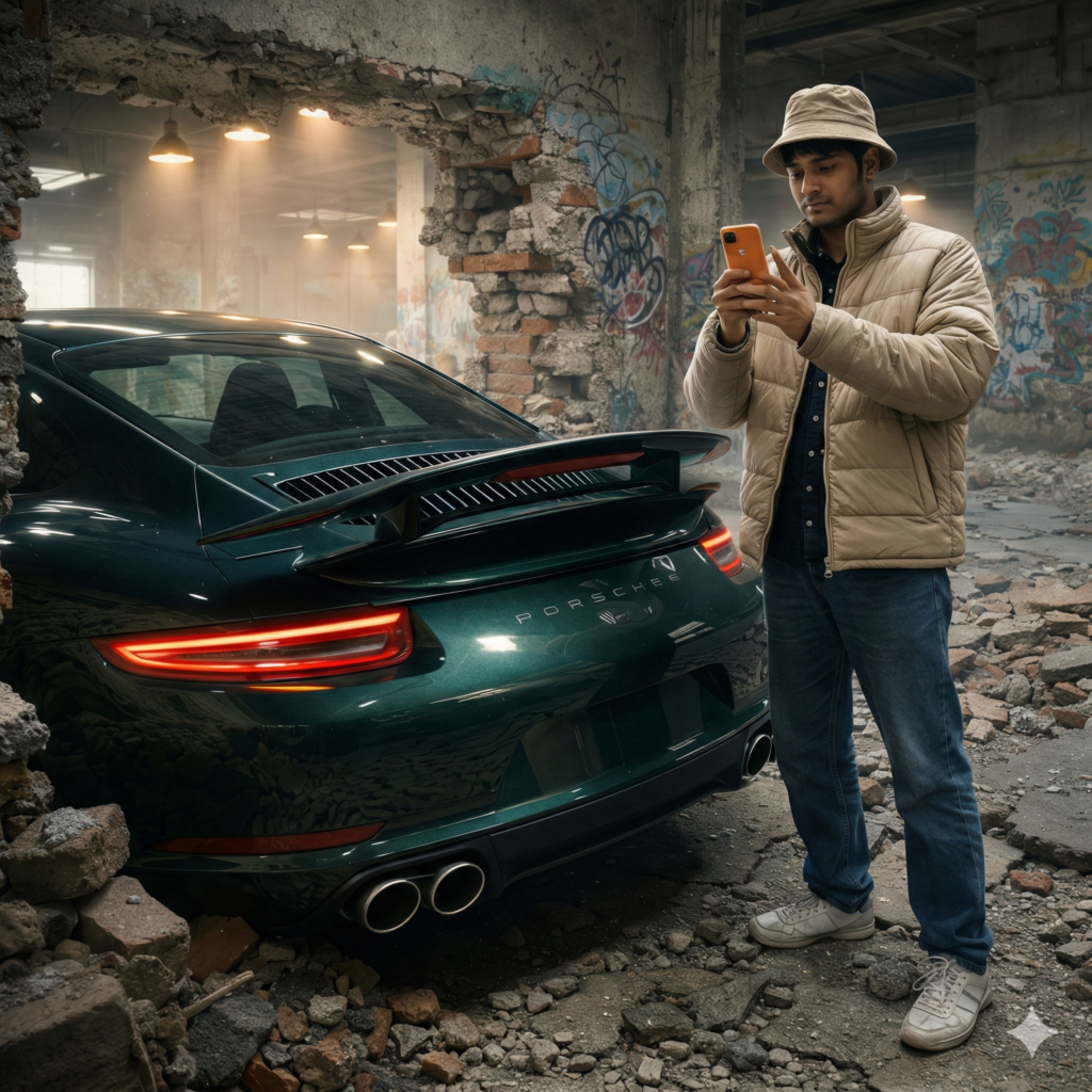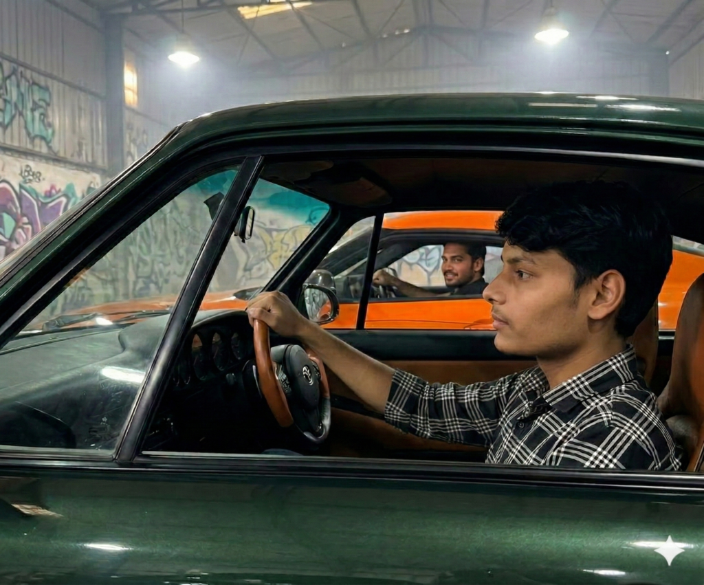 Shot as if captured on iPhone 17 Pro, 1x lens, perfect exposure balance, cinematic HDR, extremely sharp details, professional automotive photography look. realistic perspective and proportions, Do not edit or change my face.